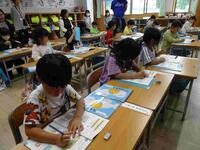 1年生の授業参観は5時間目の算数でしたが、子どもたちは疲れも見せず、集中して授業に取組んでいました。集まった先生方からは、入学後の成長ぶりをほめていただきました。