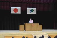 着任職員の紹介式に続き、第1学期始業式を行いました。新しい担任の先生が発表され、それぞれ張り切って新年度の生活をスタートさせました。