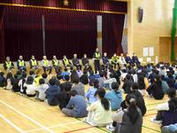 各地区のスクールガードの皆さん、子ども110番の家の方々、少年補導員さん、駐在所所長さんらが来校し、子どもたちとの顔合わせの会です。